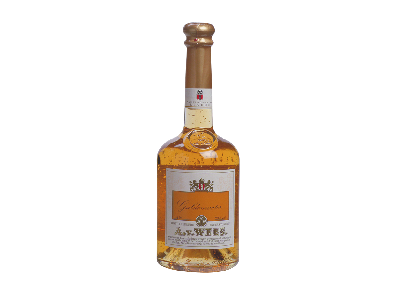 Guldenwater was de eerste, in Amsterdam gestookte likeur, die over de hele wereld geïmiteerd werd. Guldenwater werd door kooplieden en beursmensen gedronken. Beursberichten kunnen nog al eens leiden tot migraine. Het was onverstandig dit duidelijk te laten merken. Het goud gaf extra attentiewaarde, terwijl ondertussen de hoofdpijn en spanningen te lijf werden gegaan.